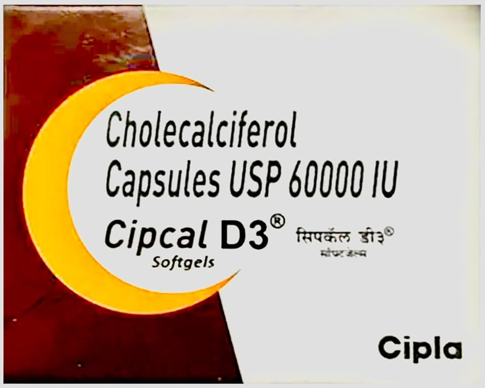 Cipcal D3 60K Softgel Capsule is a high-dose weekly Vitamin D3 supplement that boosts calcium absorption, strengthens bones, and supports immunity. Ideal for Vitamin D deficiency, bone pain, and osteoporosis support.