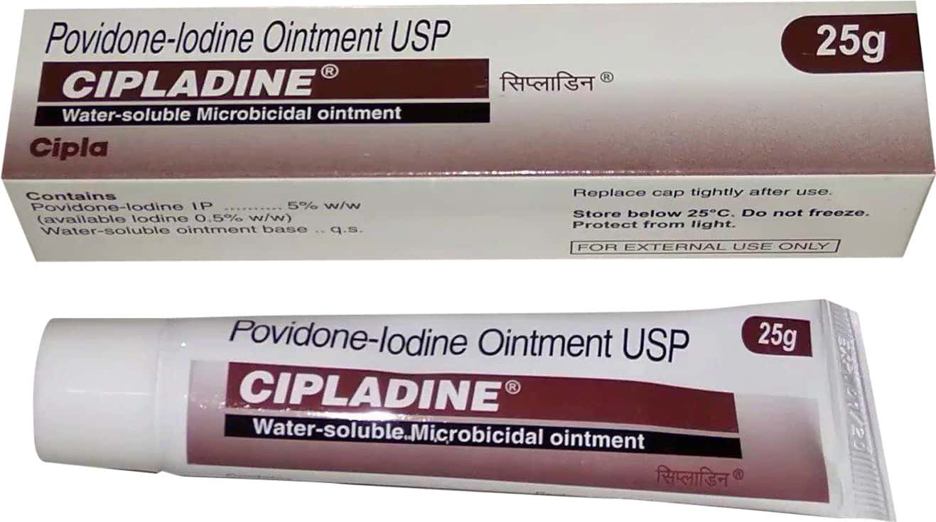 Cipladine Ointment contains Povidone Iodine, a broad-spectrum antiseptic effective against bacteria, fungi, viruses, and protozoa. It is widely used to clean wounds, prevent infection, and support healing in minor skin injuries.