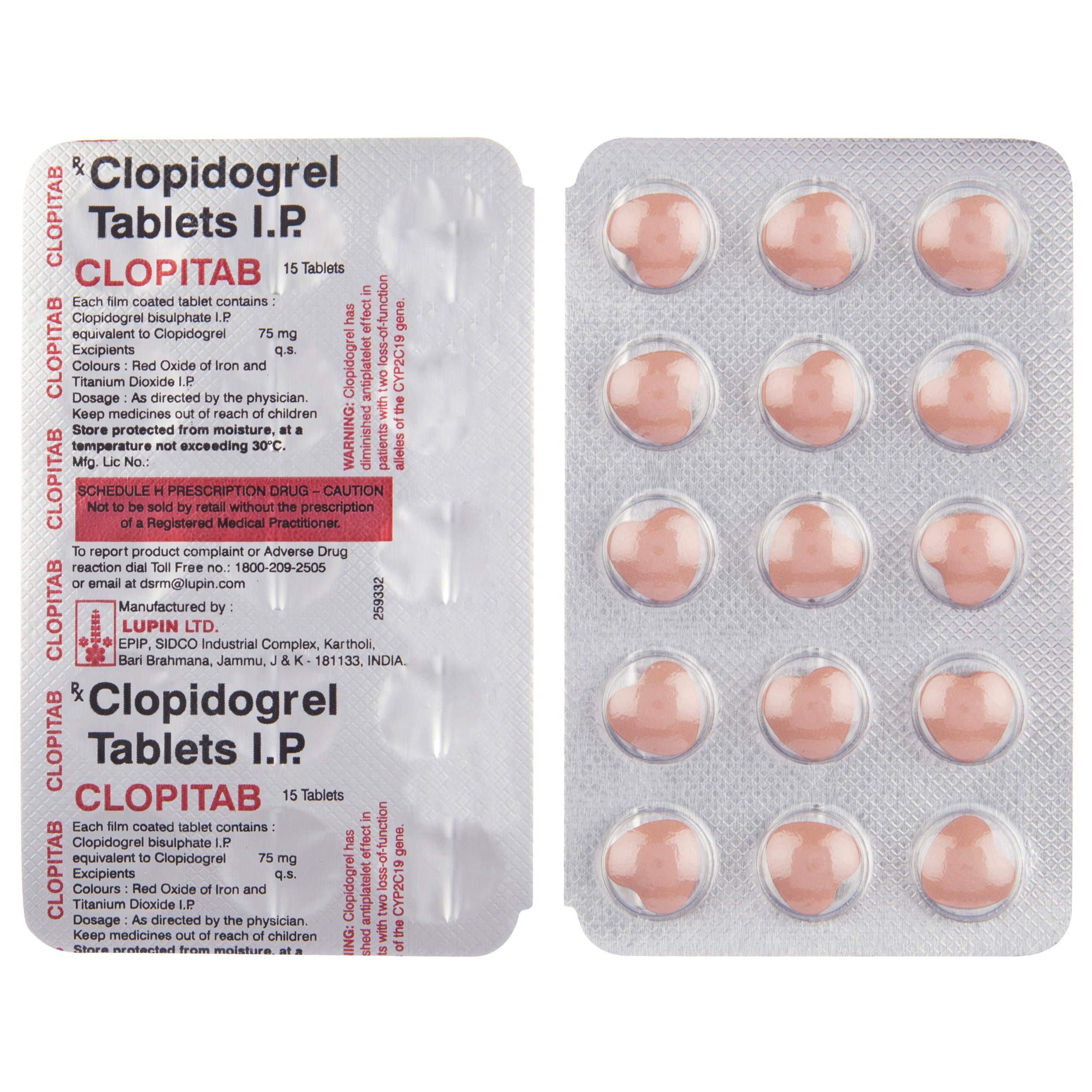 Clopitab 75 mg Tablet contains Clopidogrel, an antiplatelet agent that inhibits platelet aggregation and prevents clot formation in the blood vessels.