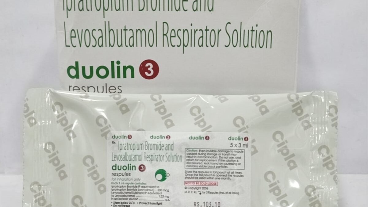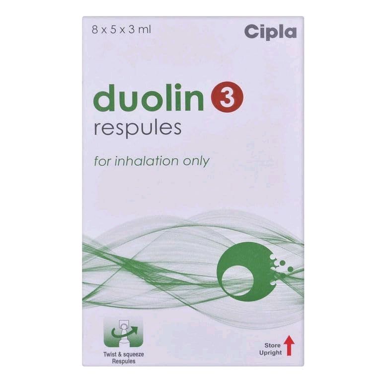 Duolin 3 Respules contain Levosalbutamol and Ipratropium for quick and effective relief from asthma, COPD, wheezing, and breathing difficulty. Suitable for nebulizer use in adults and children. Helps open airways, reduce chest tightness, and improve breathing. All-India delivery available with wrong-product return only.