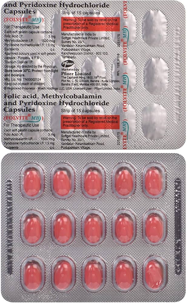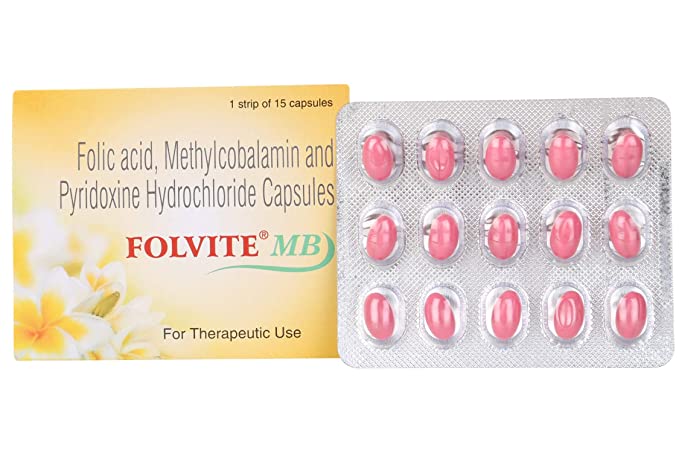 Folvite MB Capsule is a high-strength B-complex supplement combining Methylcobalamin (B12), Folic Acid (B9), and Pyridoxine (B6) to treat and prevent nutritional deficiencies. It supports red blood cell formation, boosts nerve health, aids metabolism, helps manage anemia, and improves overall vitality. This blend is particularly useful in cases of B12/folate deficiency, neuropathy, and anemia, and can be used under medical supervision during pregnancy or lactation.