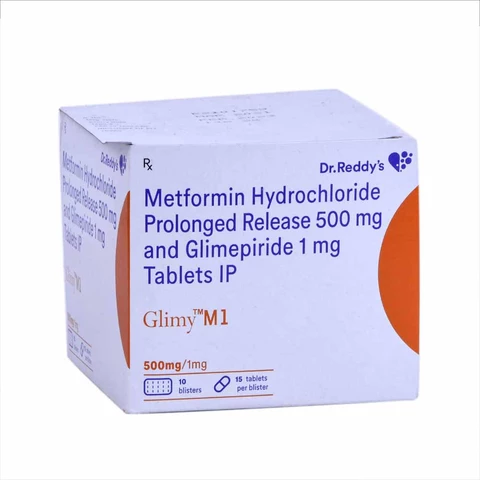Glimy M1 Tablet contains Glimepiride 1 mg + Metformin 500 mg, used to control Type 2 Diabetes and maintain stable blood sugar levels. Helps prevent long-term diabetic complications. Buy Glimy M1 online from DawaNow.in โ Indiaโs trusted online pharmacy, available all over India with quick delivery and return only for wrong product delivery.