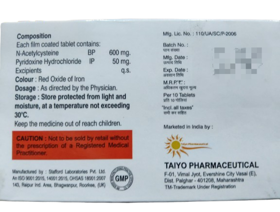 Jinzosafe Tablet (N-Acetylcysteine 600 mg + Pyridoxine Hydrochloride 50 mg)