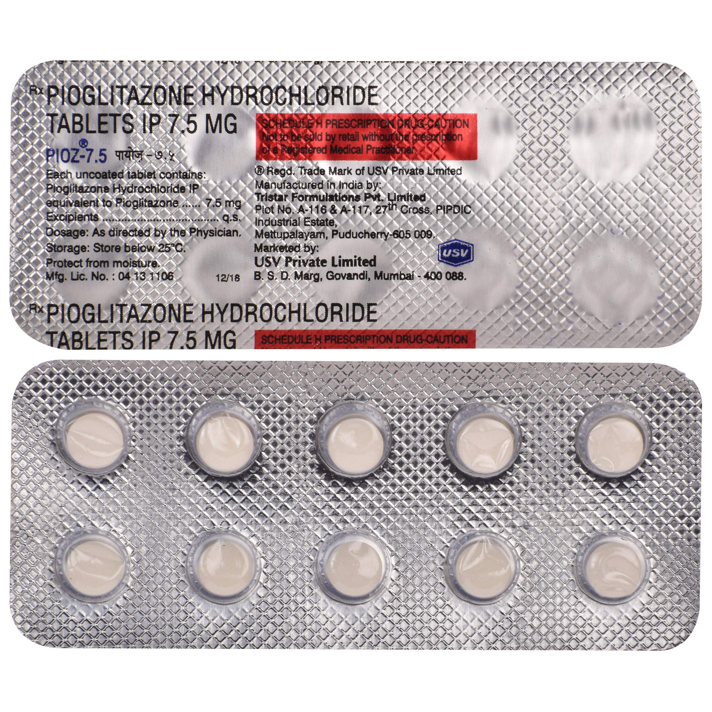 Take Pioz 7.5 mg Tablet once daily, preferably at the same time each day, with or without food, or as directed by your doctor. Regular blood sugar monitoring is advised.