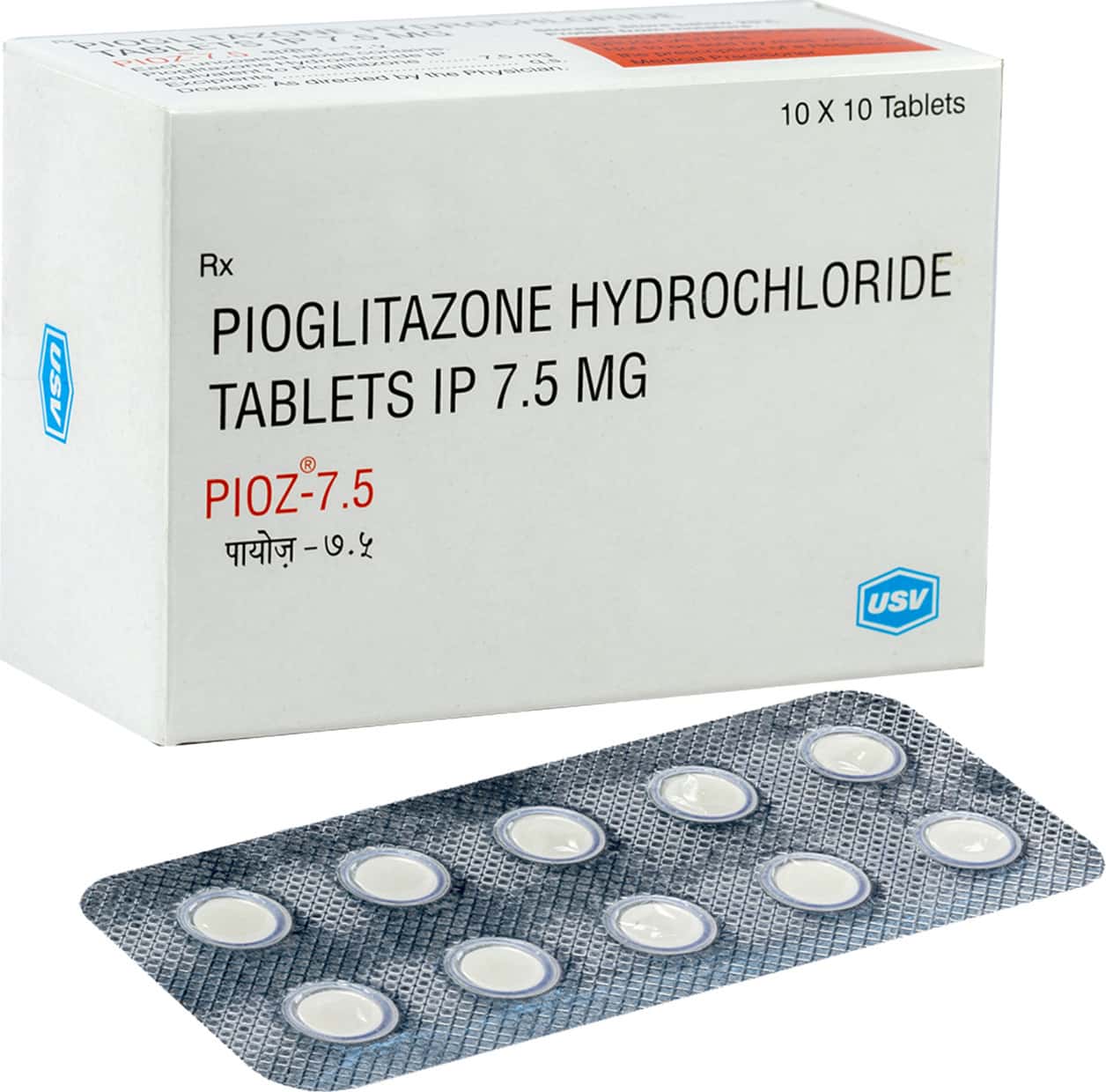 Pioglitazone belongs to the thiazolidinedione (TZD) class of medicines. It reduces insulin resistance in muscle and fat cells and decreases glucose production in the liver. Pioz 7.5 mg is commonly prescribed either alone or in combination with other anti-diabetic medicines when diet and exercise alone are not sufficient to control blood glucose levels.