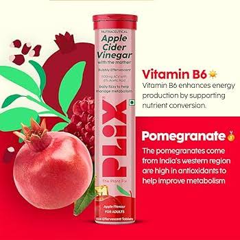 Plix Apple Cider Vinegar Effervescent Tablet with Mother is a clean, sugar-free wellness supplement containing 500 mg ACV along with Vitamin B6 and B12 to support metabolism, enhance digestion, reduce bloating, promote appetite control, boost energy levels, assist in weight management, improve gut health, and provide an easy, tasty, fast-dissolving alternative to liquid ACV with no maltodextrin, no added sugar, and no artificial additives — Only wrong product return.
