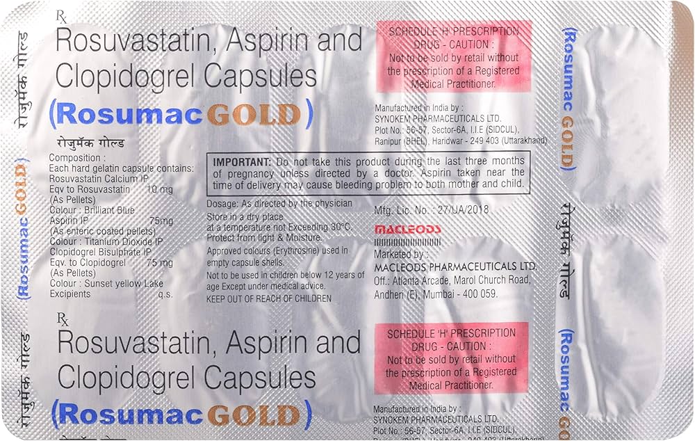 Rosumac Gold 10 mg Capsule is a combination medicine used for the management of heart and cholesterol-related conditions. It helps reduce bad cholesterol (LDL), prevents blood clot formation, and supports overall cardiovascular health.