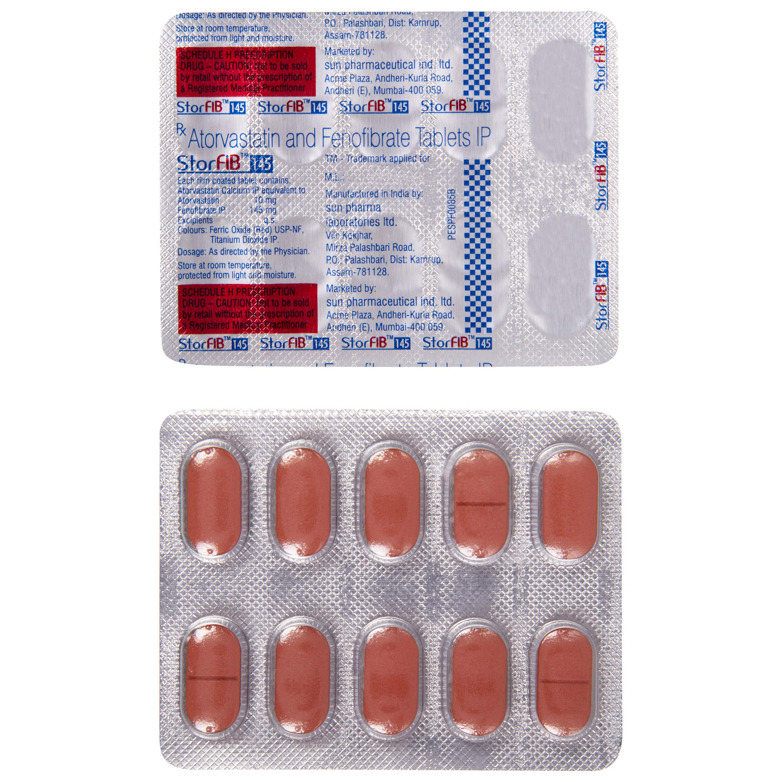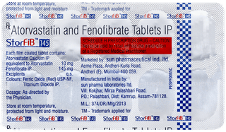 Storfib 145 mg Tablet contains Fenofibrate 145 mg, a lipid-lowering medicine used to treat high cholesterol and high triglyceride levels in the blood. It is especially effective in reducing bad cholesterol (LDL), triglycerides, and increasing good cholesterol (HDL) when diet and lifestyle changes alone are not sufficient.