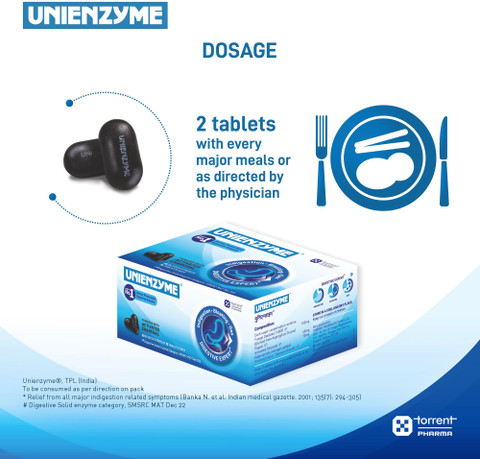 Unienzyme Tablet is a digestive enzyme supplement that improves digestion, relieves bloating and gas, and supports nutrient absorption. Ideal for indigestion, loss of appetite, and digestive discomfort. Genuine product with fast all-India delivery and secure packaging. Return accepted only if a wrong product is delivered.