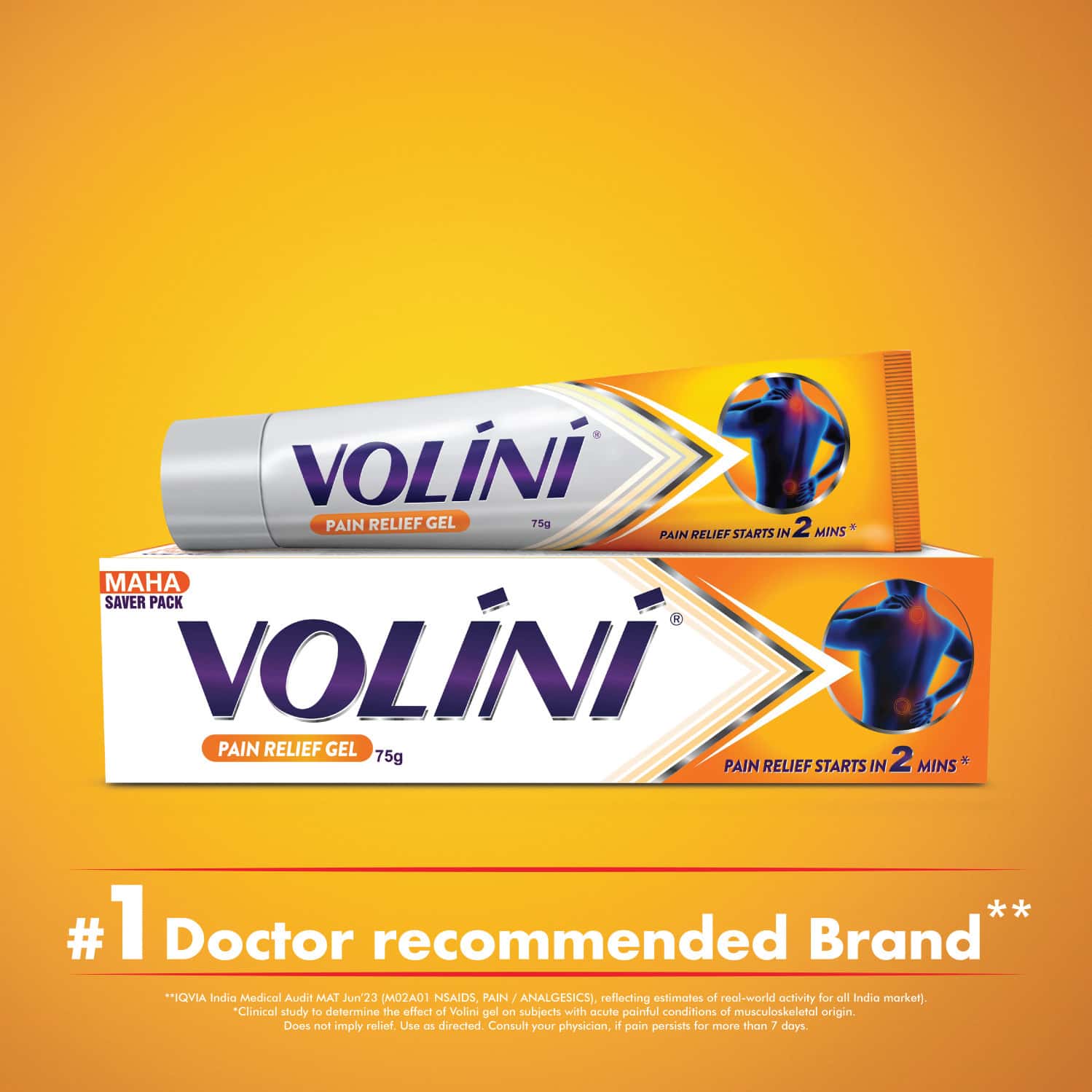 Volini Gel 75 gm provides fast-absorbing, non-greasy relief from muscle pain, joint pain, sprains, backache, stiffness, and sports injuries. Deep action formula reduces inflammation and offers quick comfort. Delivery across India. Wrong product return applicable only.