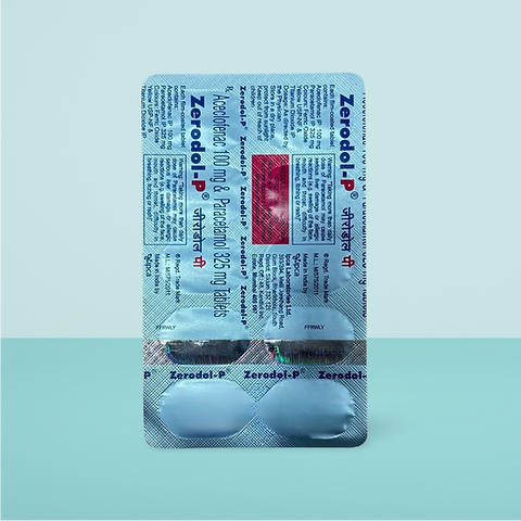 Zerodol P Tablet is a fast-acting pain and inflammation-relief medicine containing Aceclofenac and Paracetamol. It is highly effective for headache, body ache, joint pain, arthritis, muscle pain, toothache, period pain, back pain, sprain, strain, and injury-related swelling. It reduces stiffness, controls fever, and provides long-lasting relief.