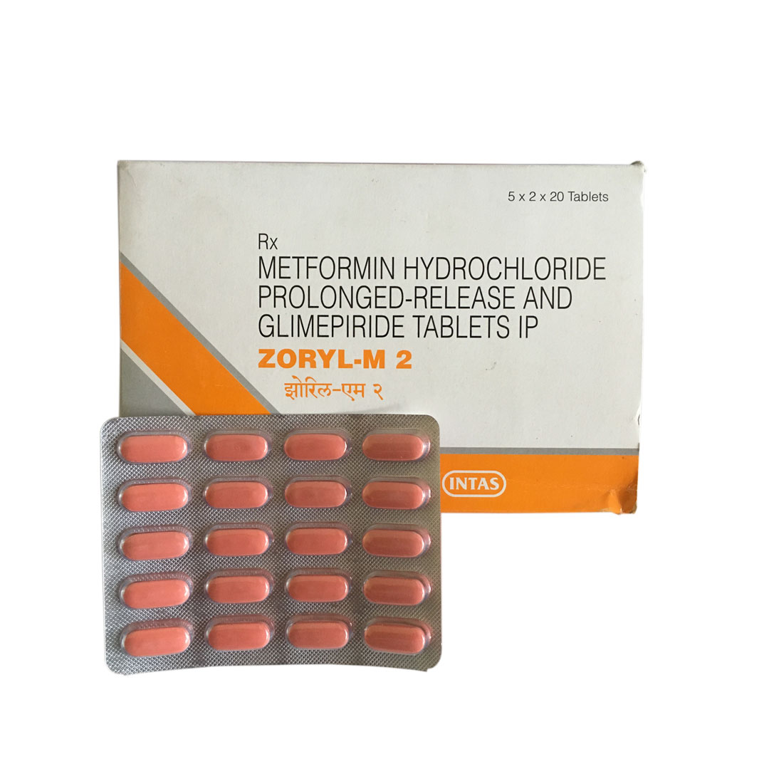Zoryl M2 Tablet is a combination of Glimepiride 2 mg and Metformin used to control high blood sugar levels in Type 2 Diabetes. It helps the body use insulin more effectively, reduces sugar production, and maintains stable glucose levels throughout the day. Recommended when Metformin alone is not enough. Delivery available across India with return only if the wrong product is delivered.
